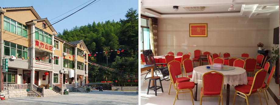 鼎竹山庄位于大竹海景区停车场50米处,拥有10个小车位和4个大巴车位,餐厅简洁大方,拥有4个包厢,2个大厅。为旅客准备了理想的住宿,拥有标准客房13间、室内配有空调,单独卫生间,无线上网,24小时热水供应,专为您出玩、办公带来方便和快捷。还配有卡拉OK、棋牌室等娱乐设施;学生还可以烧烤、挖竹笋等;同时,我们为您准备了本地的特色农家菜、正宗野味,有小野鱼、有山间竹笋、鞭笋、笋干、高山蔬菜、本鸡、蛋类等食物,自然绿色。